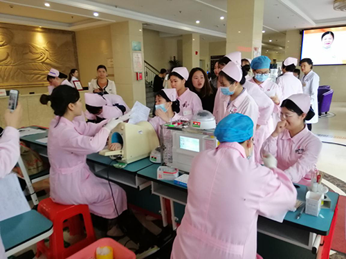 2019年2月28日早上9点,院长钟彦光、廖明云、党委书记陈向勇就带领全院医护人员来到了医院一楼大厅无偿献血处献血车旁,填表、量血压、化验、采血,积极参加到献血活动中,献血处人头攒动,温情融融。